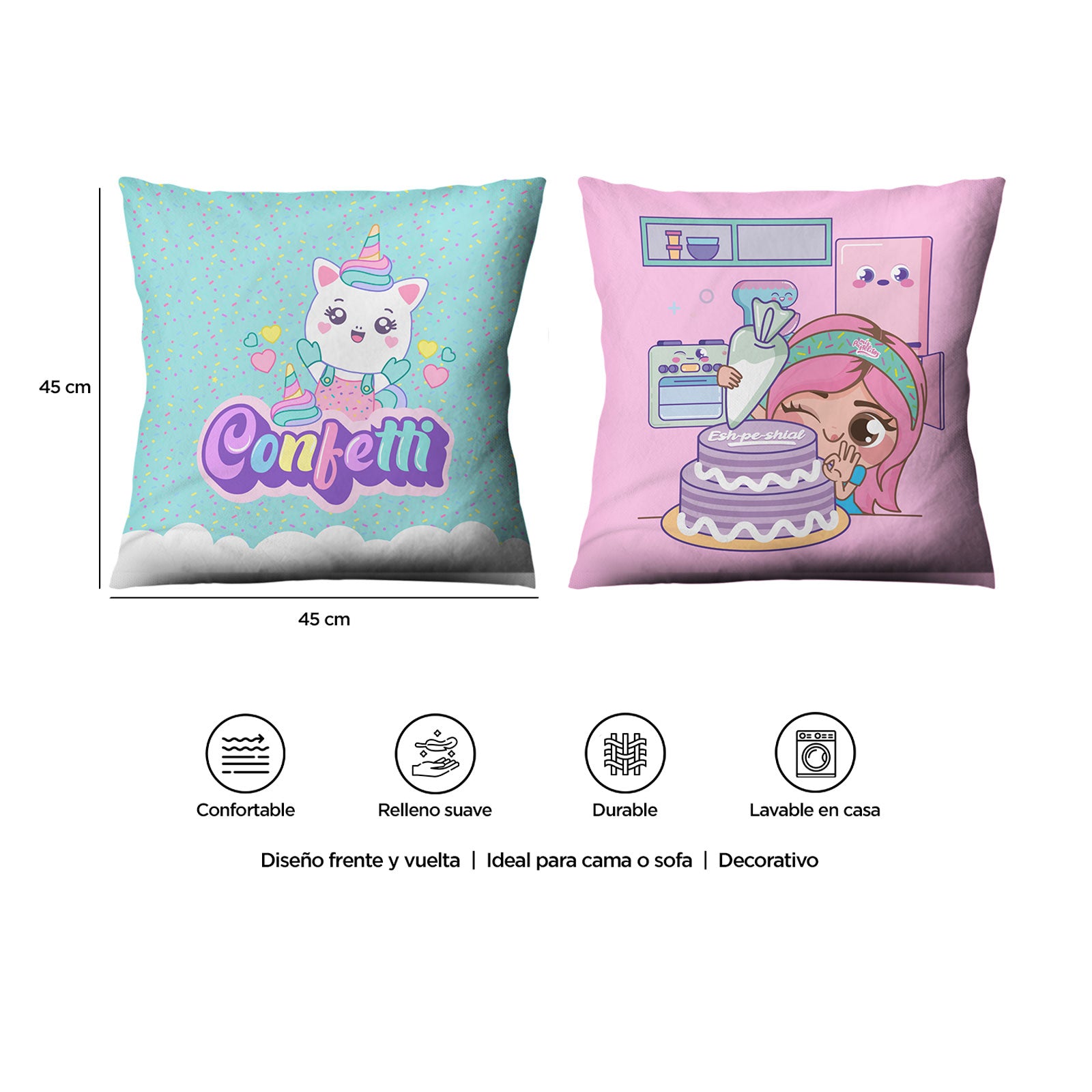 • Cojín Mis pastelitos y Confetti cuadrado