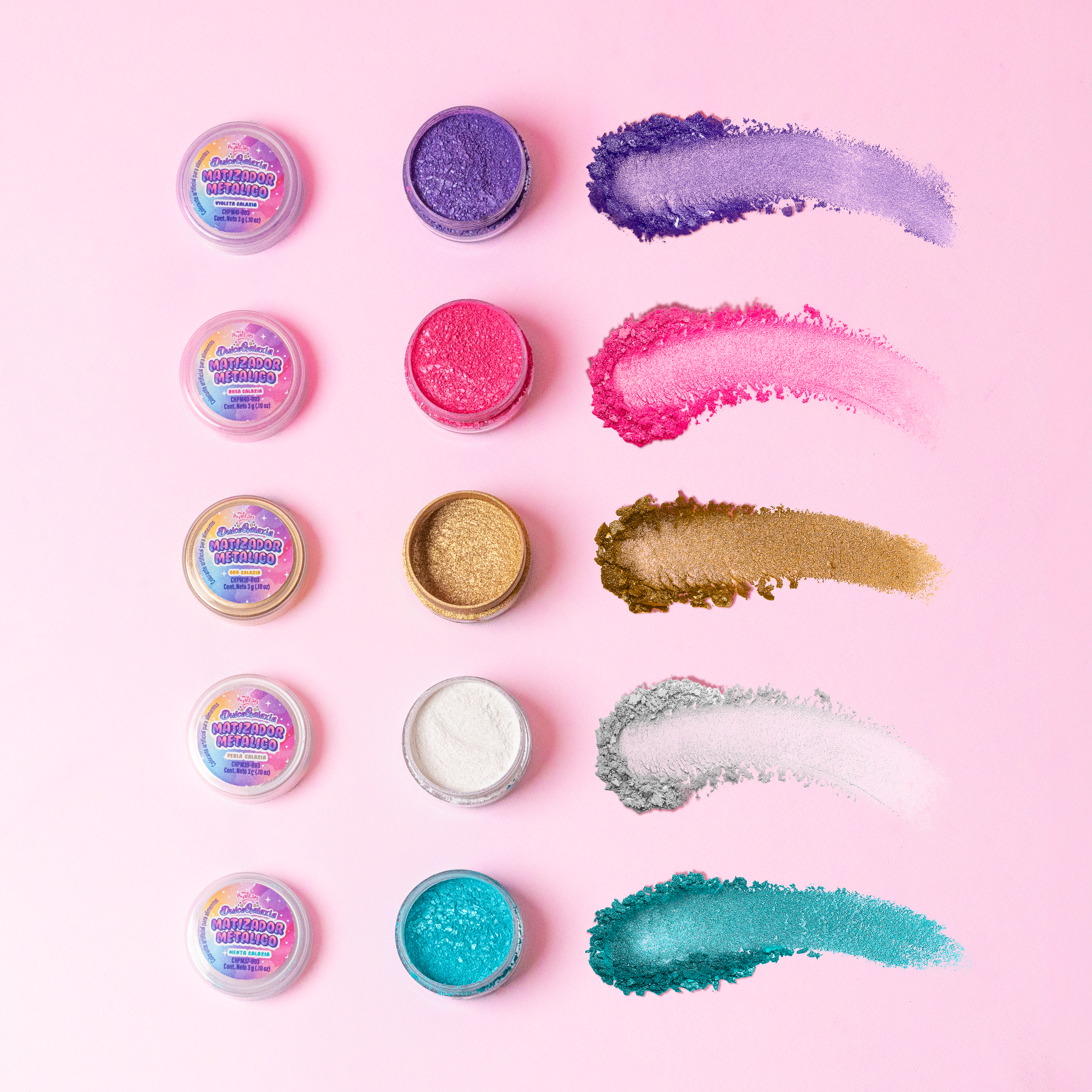 Color en polvo metálico ideal para matizar sobre chocolate, fondant, royal icing, galletas, macarons, etc.